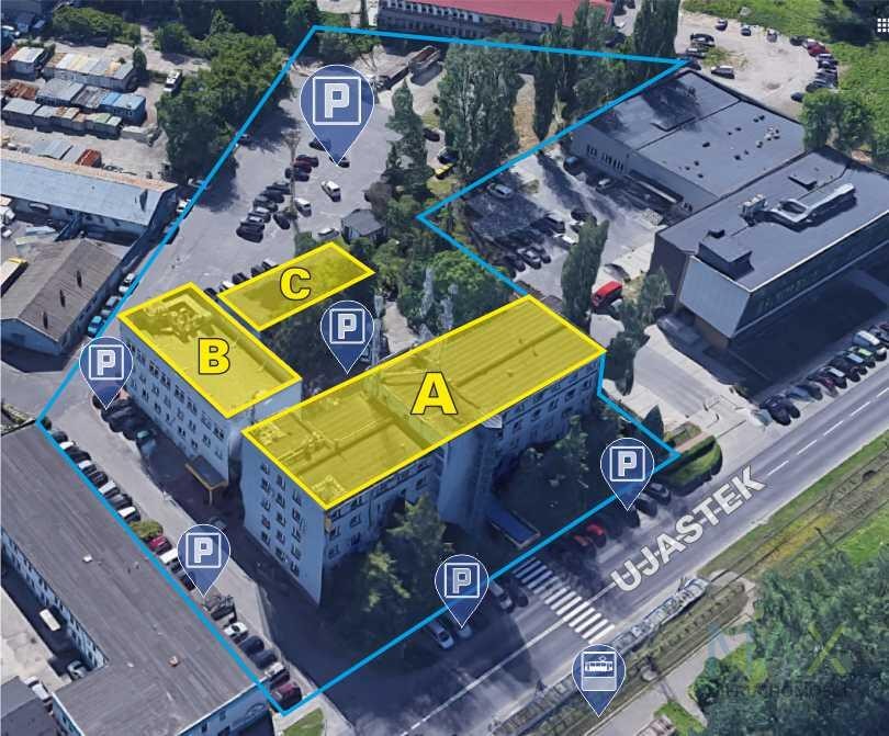 BUDYNEK A: Budynek o charakterze biurowo-usługowym w dobrym stanie technicznym, posiadający duży parking (140 miejsc), dozorowany, ocieplony, z dogodnym dojazdem. Recepcja oraz całodobowa ochrona fizyczna i monitoring. Instalacje elektryczne z zasilaniem awaryjnym (140 kW), teleinformatyczne, internet światłowodowy (5 dostawców); ogrzewanie centralne miejskie. Winda osobowa. Stolarka okienna PVC. Przystanek MPK bezpośrednio przed budynkiem. Bliskość obwodnicy Krakowa (niecałe 2 km do drogi S-7).