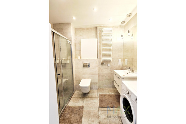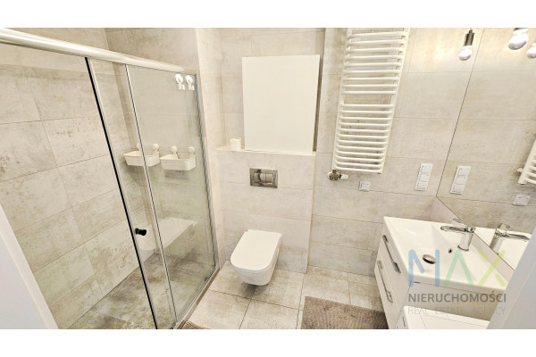 Mieszkanie składa się z salonu otwartego na kuchnię, sypialni, łazienki z dużą kabiną prysznicową . Z obydwu pokoi jest wyjście na duży balkon. Do mieszkania przynależy miejsce postojowe w garażu podziemnym ( obligatoryjne) oraz komórka lokatorska położona na tym samym piętrze..