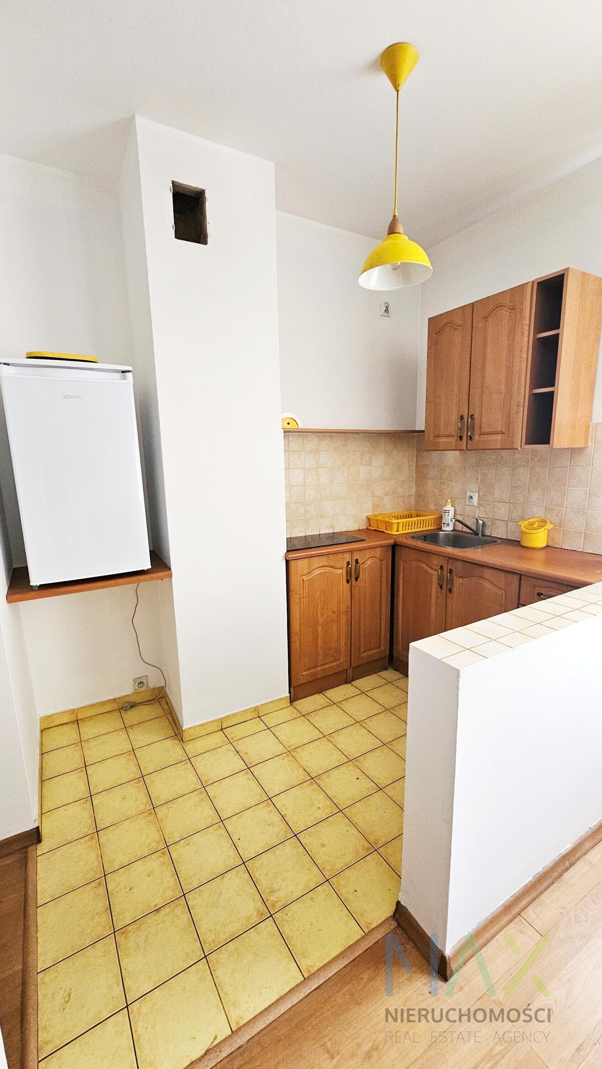 MIeszkanie składa się z przestronnego pokoju, małego aneksu kuchennego, łazienki z wanną i przedpokju z 2 dużymi i pojemnymi szafami.