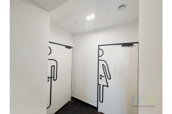 Lokal świeżo wykończony, po kapitalym remoncie, podobnie jak cały budynek. Części wspólne wykończone i wyposazone na wysoki standard. Lokal także wykończony. Toalety wspólne dla każdego skrzydła. Umeblowanie lokalu będzie po stronie najemcy.