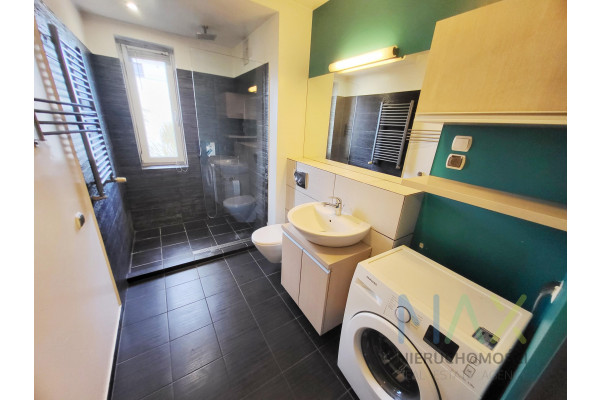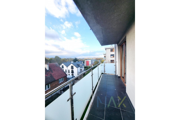 Nowe budownictwo z windą, spokojna i zielona okolica, blisko do przystanku tramwajowego.