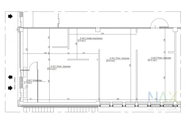 Do wynajęcia powierzchnia biurowo - usługowa lub handlowa w buirowcu klasy A połozonym przy ul. Kamieńskiego. W lokalu są zarówno zwykłe okna ( 6 ), jak i i witryna z wejściem bezposrednio z zewnatrz.