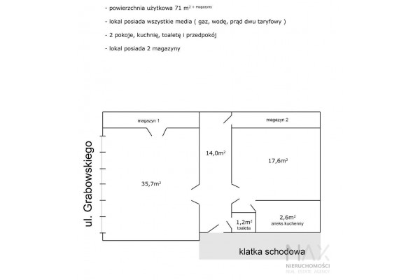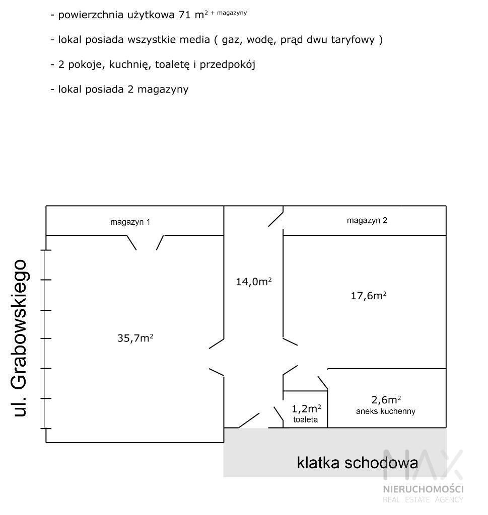 Do wynajęcia atrakcyjny lokal na najwyzszym pietrze starej kamienicy. Lokal składa się z dwóch pokoi ( w tym jeden ma 37m2 i jest swietnie doświetlany), łazienki, aneksu kuchennego, holu oraz magazynku. Łączna powierzchnia lokalu to 71m2.