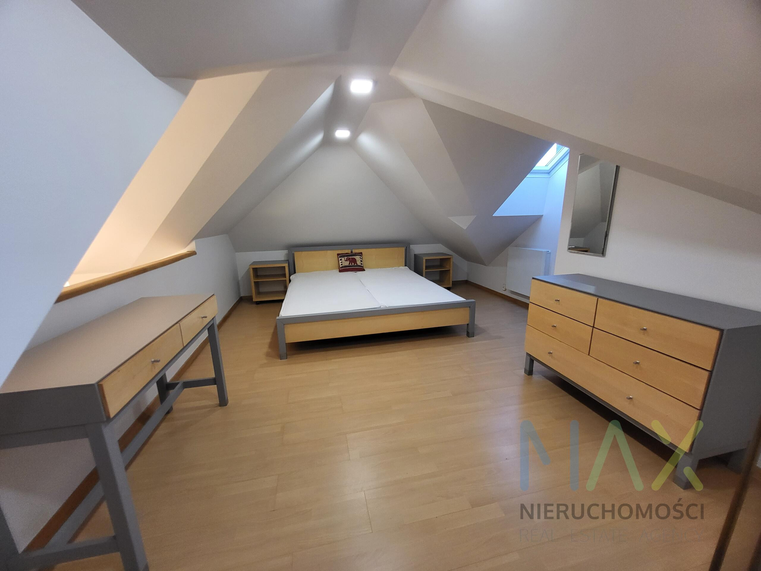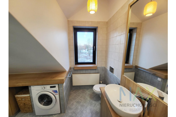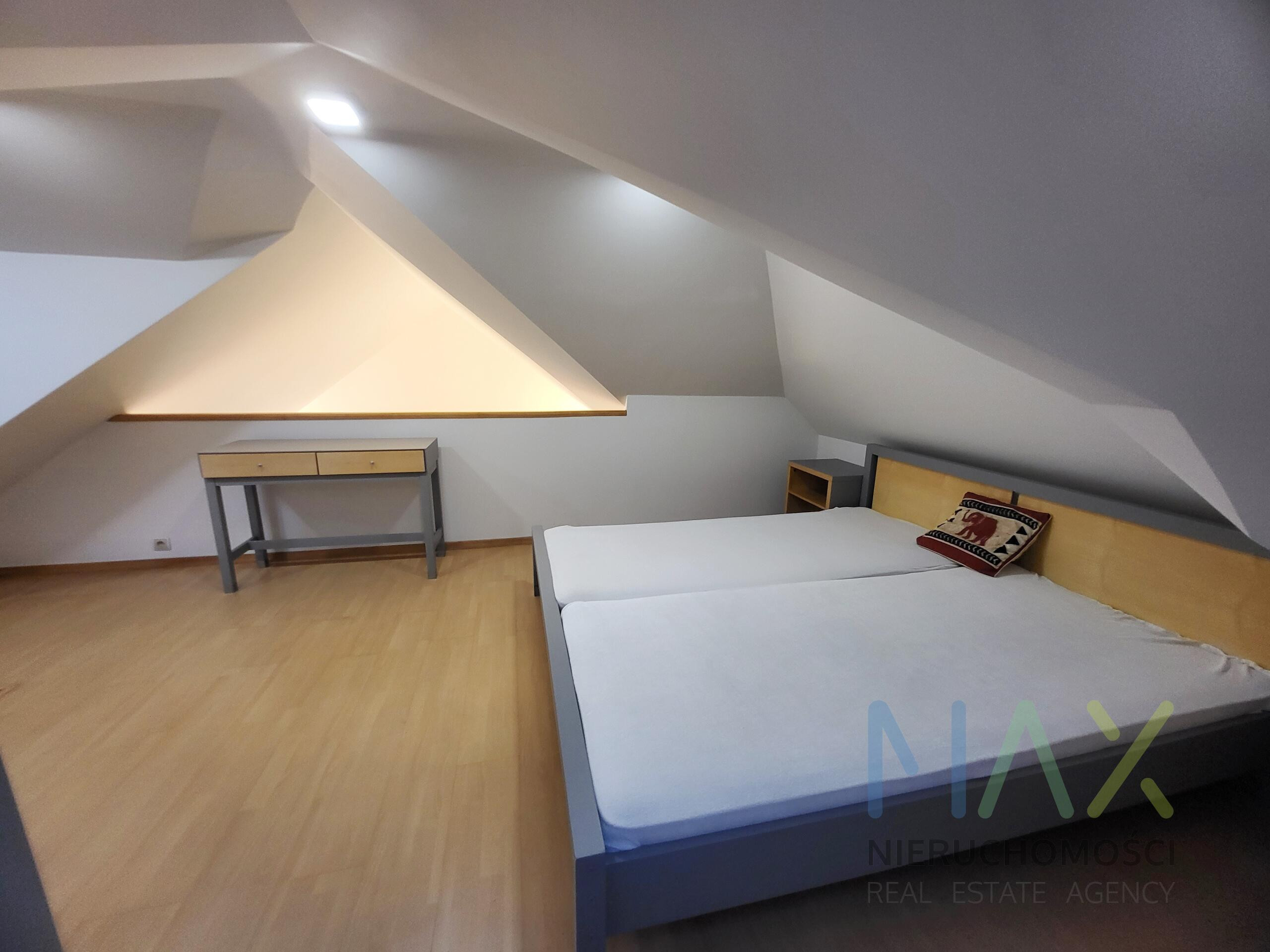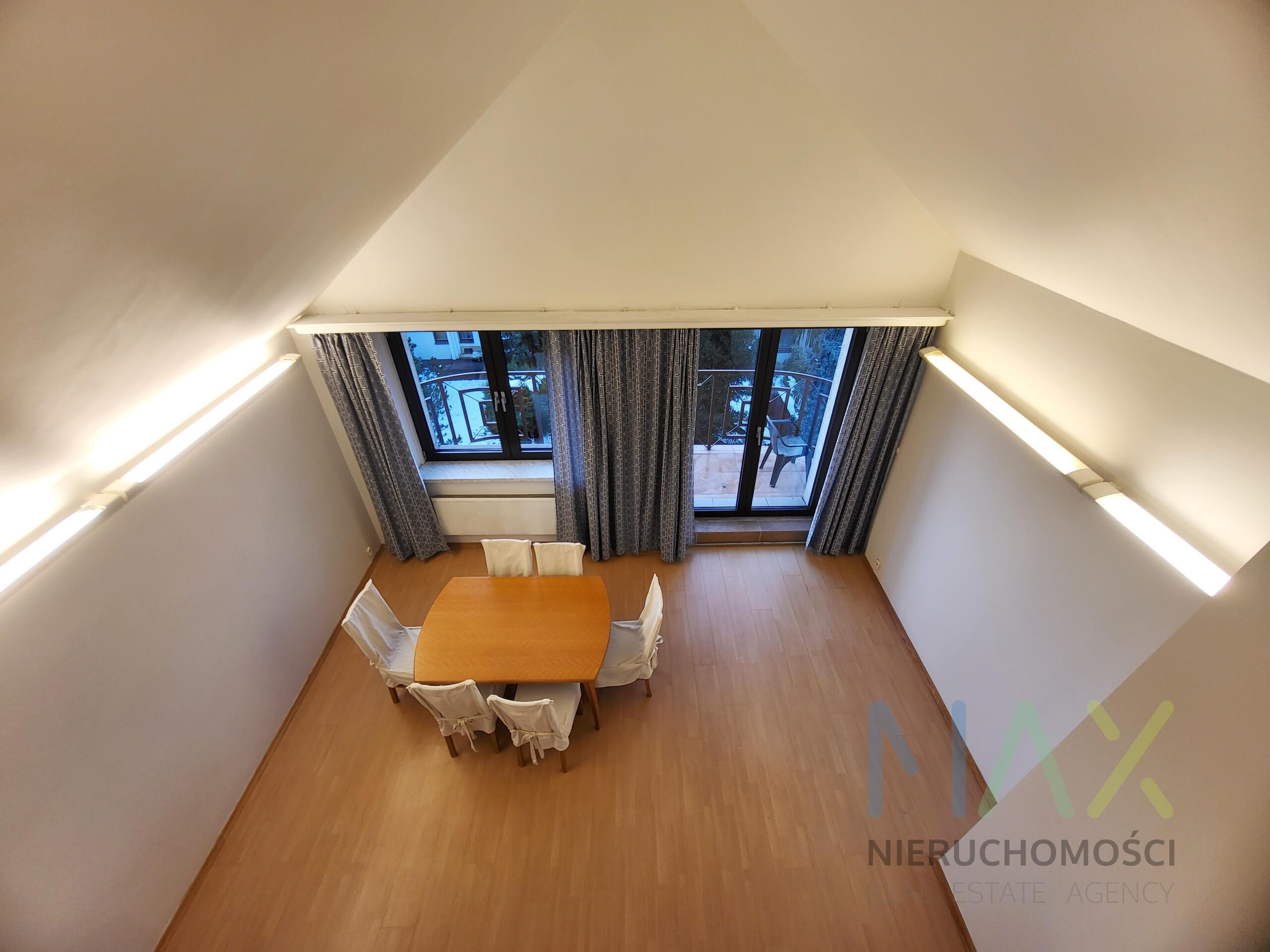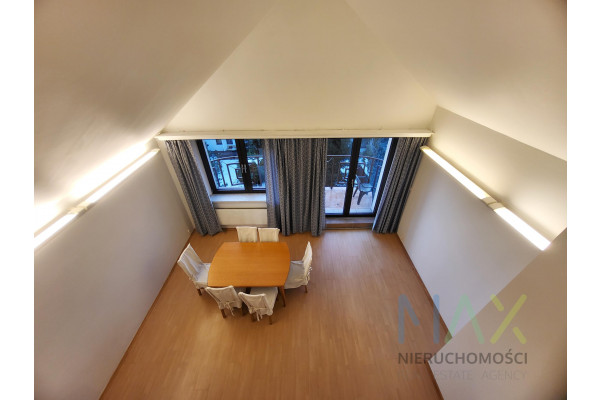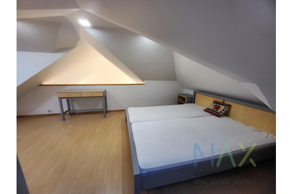 Mieszkanie posiada w pełni umeblowaną i wyposażoną kuchnię ( zmywarka, lodówka, piekarnik etc) i łazienkę ( pralka) oraz umeblowaną sypialnię z garderobą na antresoli.