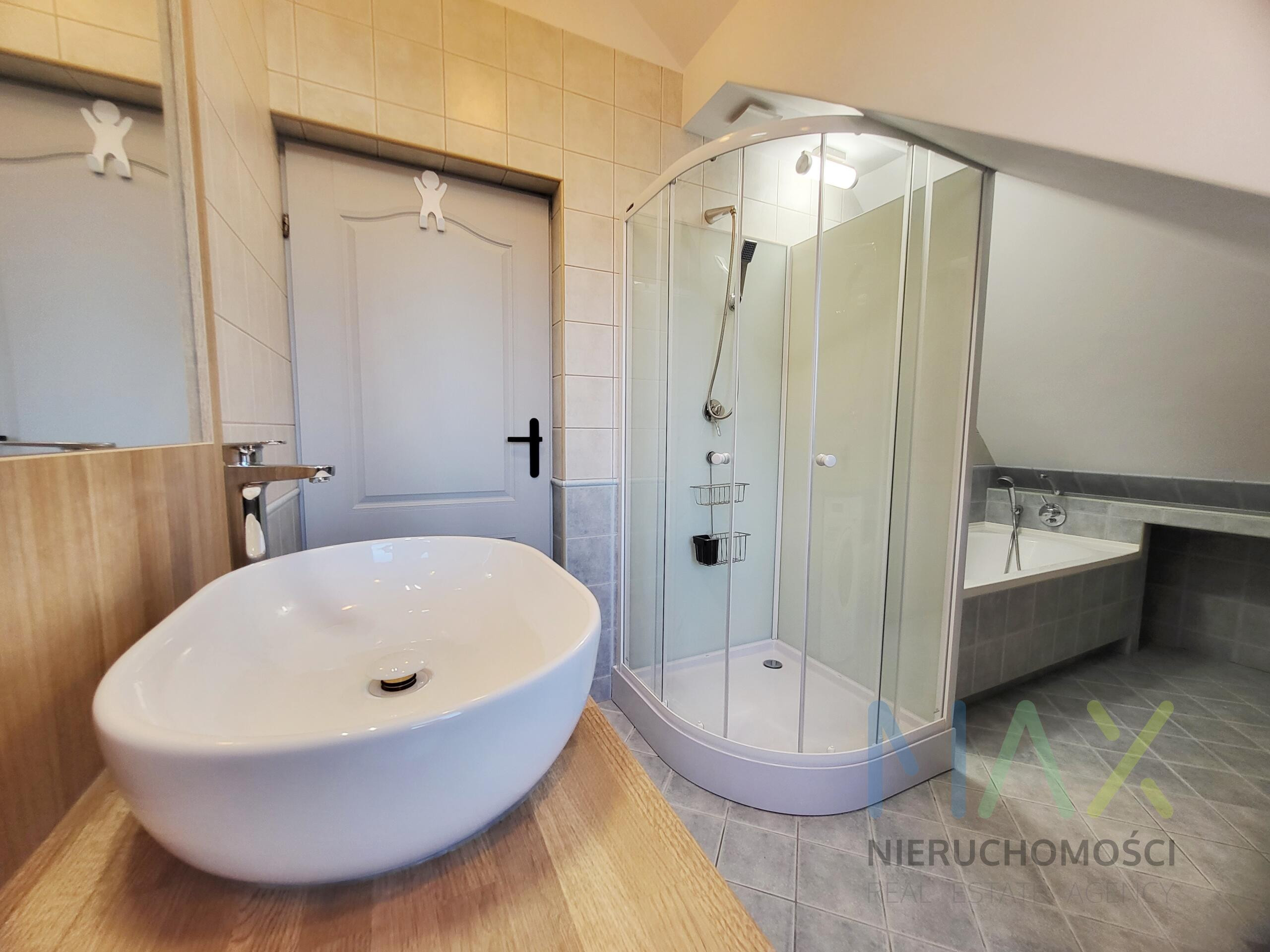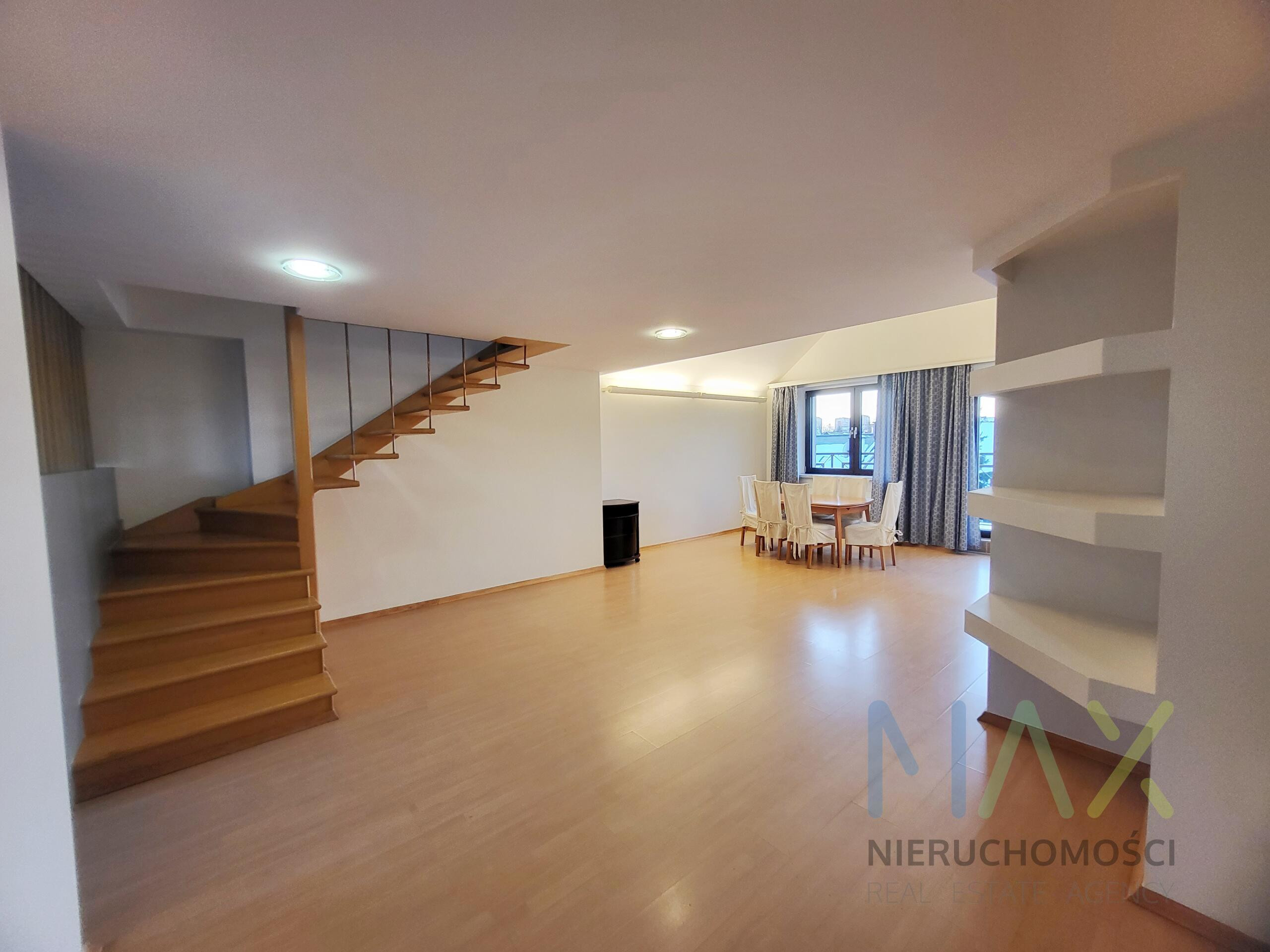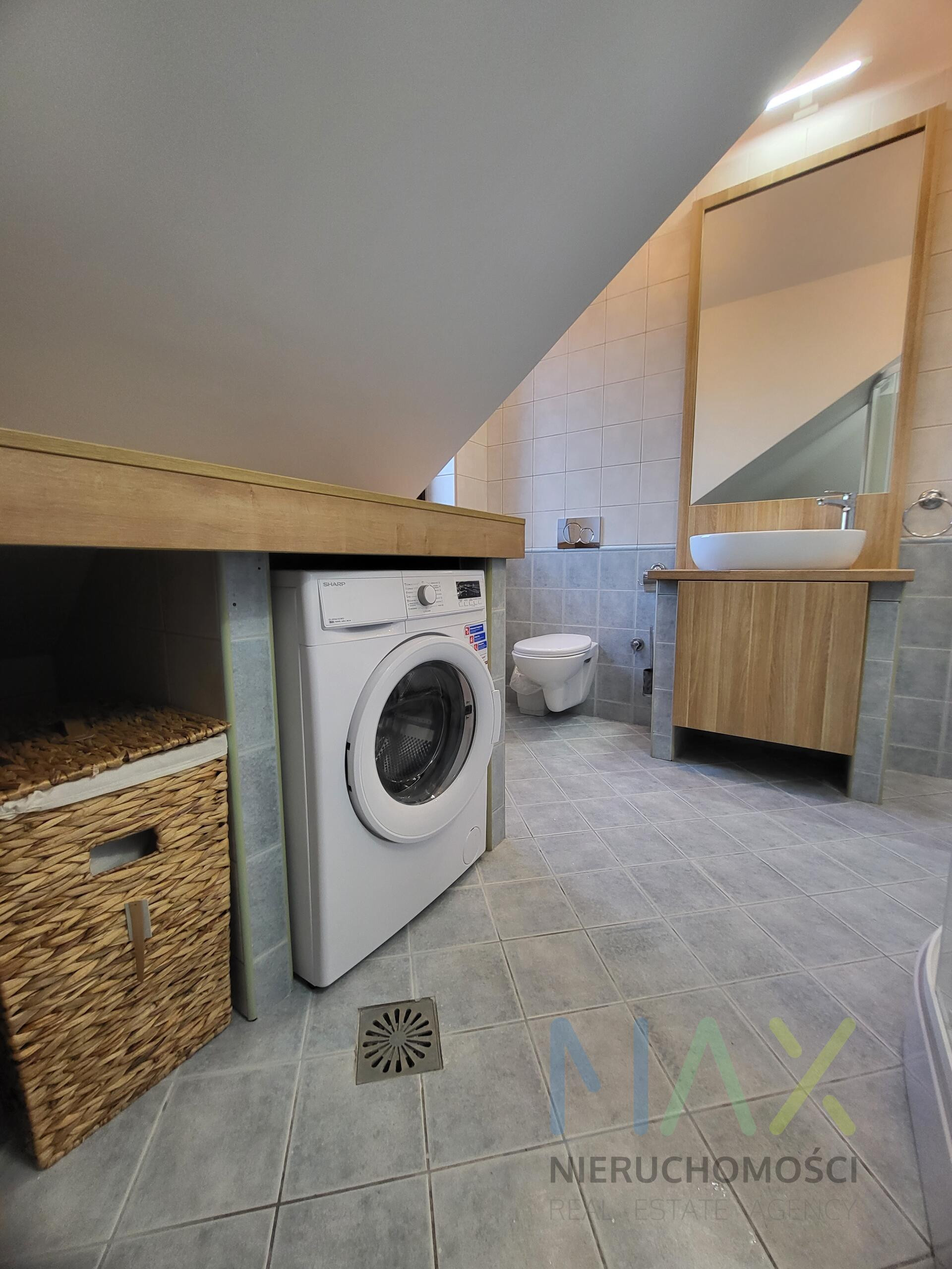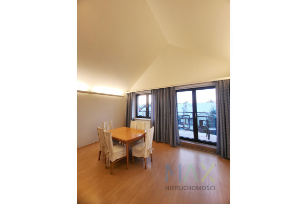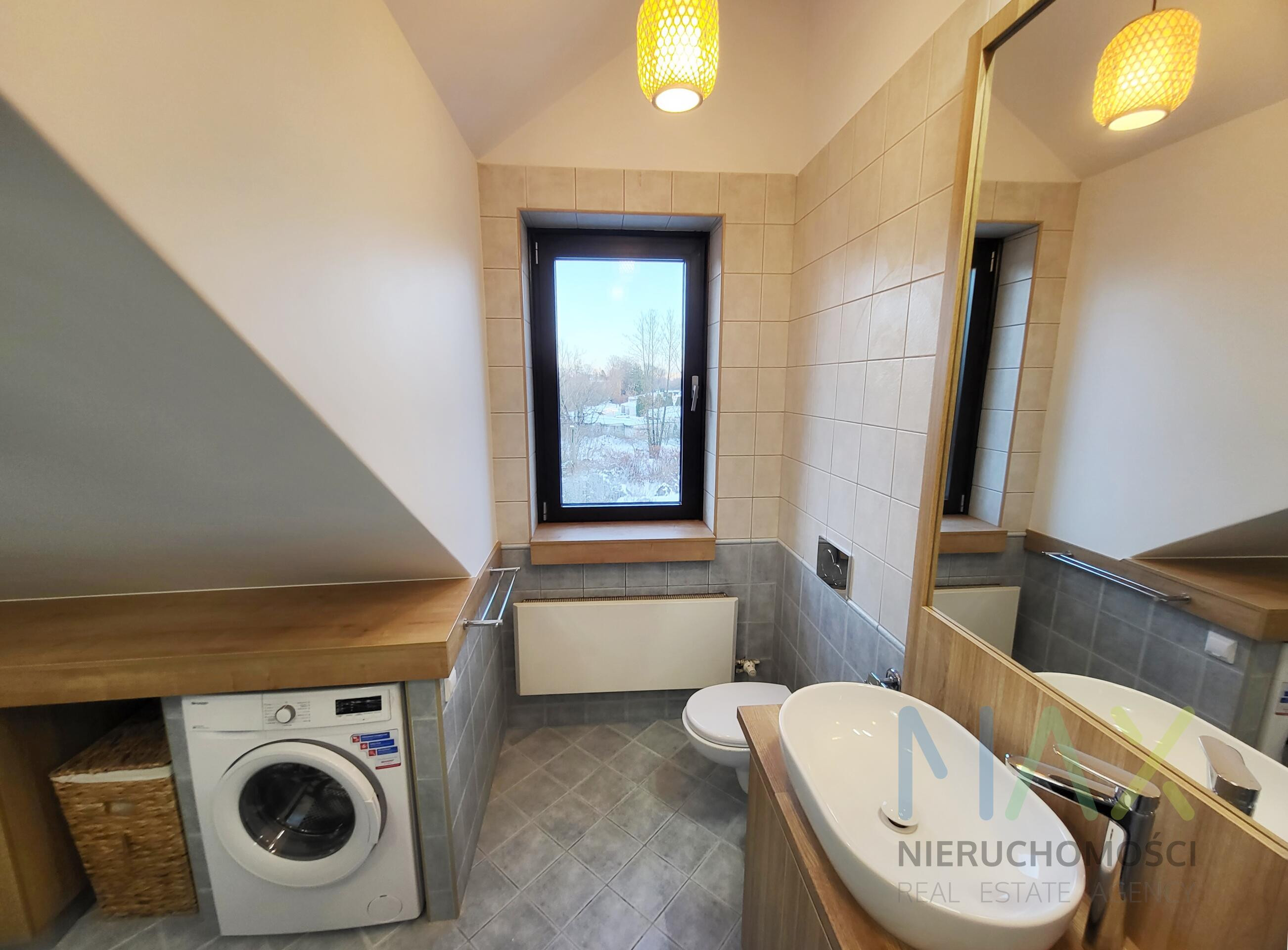 Mieszkanie posiada w pełni umeblowaną i wyposażoną kuchnię ( zmywarka, lodówka, piekarnik etc) i łazienkę ( pralka) oraz umeblowaną sypialnię z garderobą na antresoli.