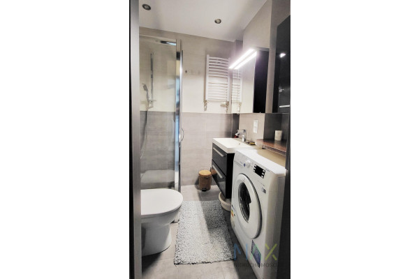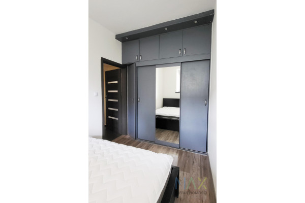 Mieszkanie w pełni umeblowane i wyposażone (m.in. lodówko-zamrażarka, zmywarka, telewizor, płyta ceramiczna z piekarnikiem). Na wyposażeniu są również sztućce, garnki, odkurzacz, żelazko itp.