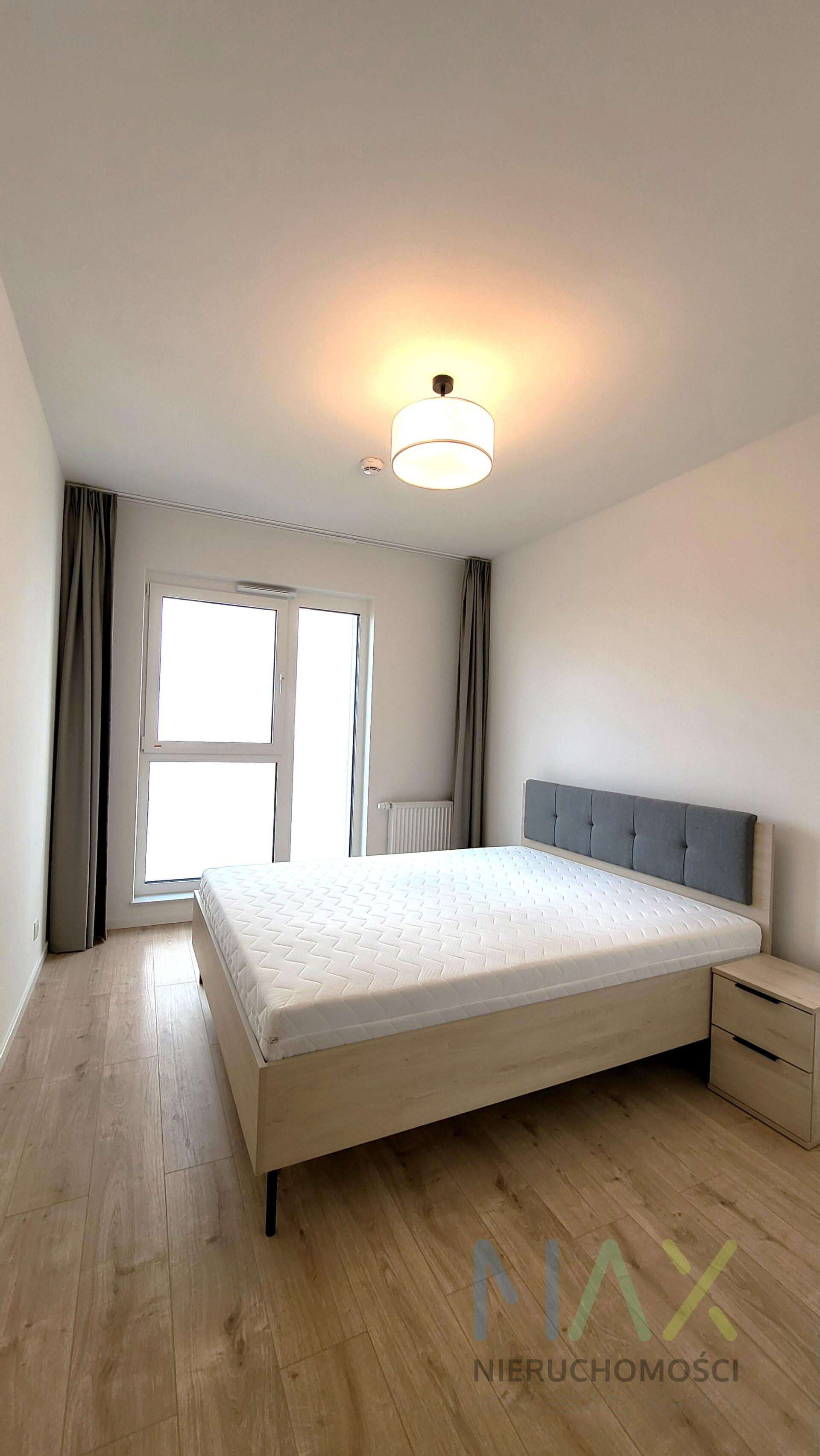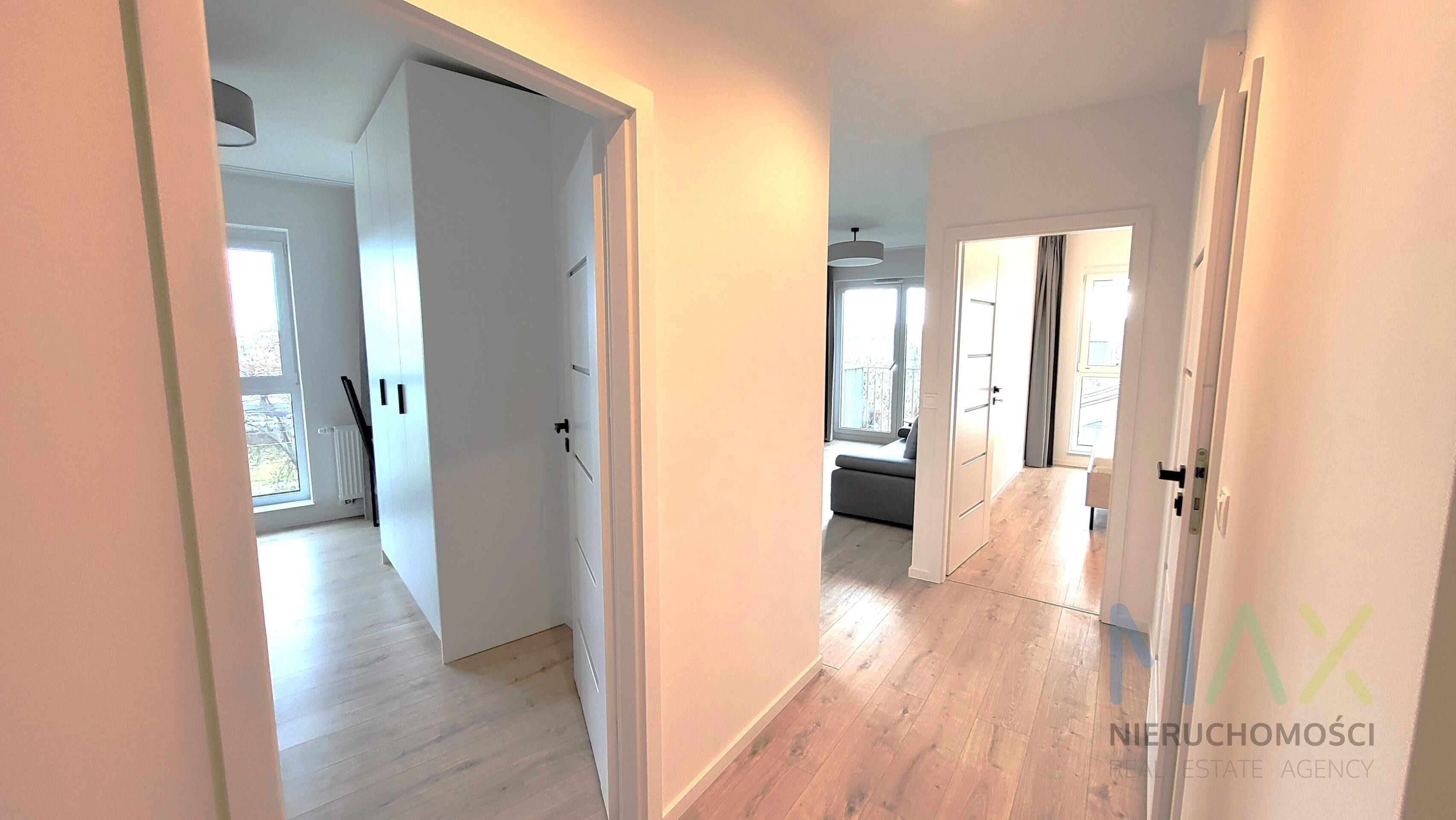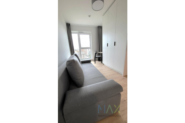 Sypialnia, pokój, salon z aneksem kuchennym (płyta grzewcza, piekarnik, zmywarka, lodówko-zamrażarka), garderoba, łazienka, przedpokój, balkon.