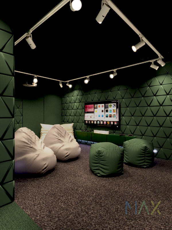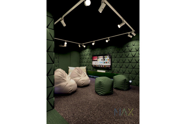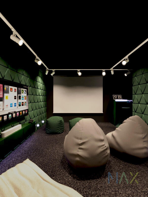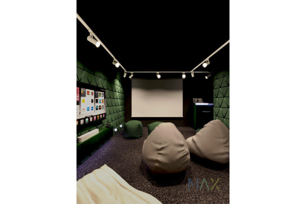 Dla mieszkańców jest dostępna sala kinowa i strefa coworking.