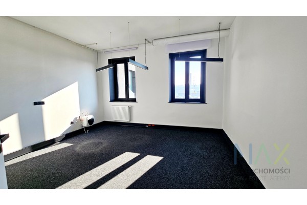 Do wynajęcia biuro o powierchni 55,8m2 skaładające się z 2 pokoi, z dostępem do wspólej kuchni oraz toalet.