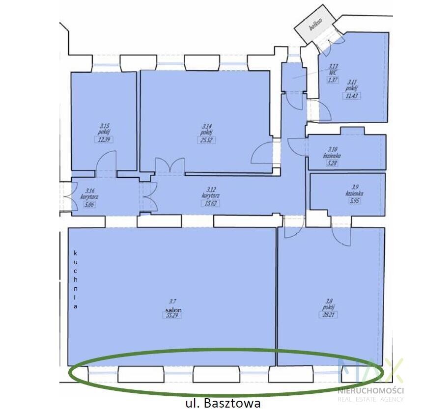 Układ: przestronny jasny salon z aneksem kuchennym, 2 łazienki, 3 sypialnie, oddzielna pralnia, dodatkowy pokój pełniący funkcję garderoby (możliwość adaptacji na 4. sypialnię), balkon.