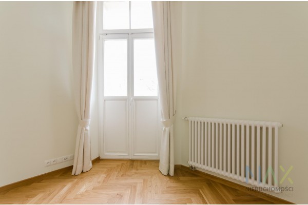 Ponadczasowy styl - apartament po generalnej renowacji, klasyczne parkiety, wysokie okna, odrestaurowane zabytkowe drzwi, wysokie sufity z dekoracyjnymi sztukateriami.